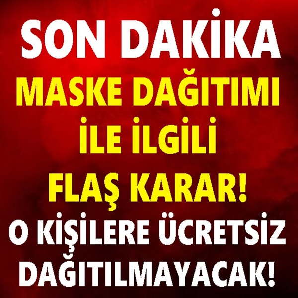 Son dakika… Ücretsiz maske dağıtımına kısıtlama geldi Corona virüsü salgını nedeniyle devlet tarafından ücretsiz dağıtılan maskelerle ilgili flaş gelişme… İstanbul Eczacı Odası, dağıtımda yaşanan yoğunluğun azaltılması için yeni kararlar alındığını açıkladı.